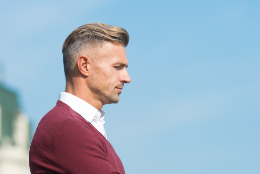 Este peinado es el peinado masculino por excelencia en la actualidad, consta de una fracción de cabello más largo en la parte superior de la cabeza y un degradado hacia la piel en los laterales y la parte trasera. Puede hacerse de muchas formas, con el degradado más corto, más largo, que comience más arriba, más abajo, etc. Desde luego este corte no requiere mucho esfuerzo para su mantenimiento, pero hay que asegurarse de que lo haga un buen estilista para que nos salga el degradado como buscamos.